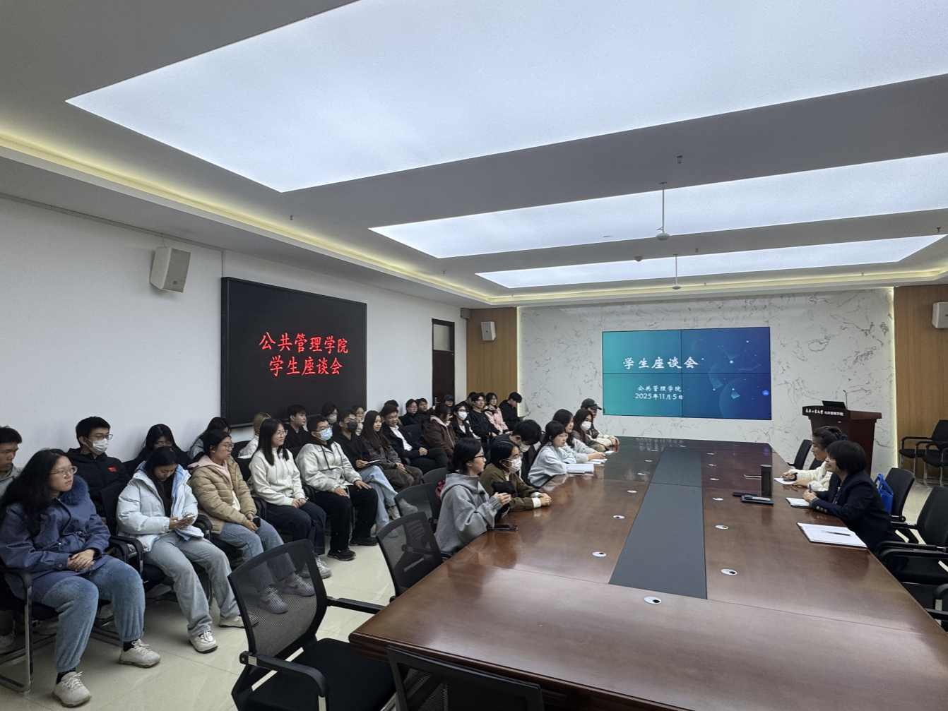 在北湖东区主楼401室组织召开本科教学工作学生座谈会,聚焦本科教学与管理工作的优化与提升。会议由学院教学副院长冯娜老师主持,教务处委派联络员参加,各年级本科生代表参与,围绕课程设置、教学安排、设施保障、考试制度等议题展开了深入交流。