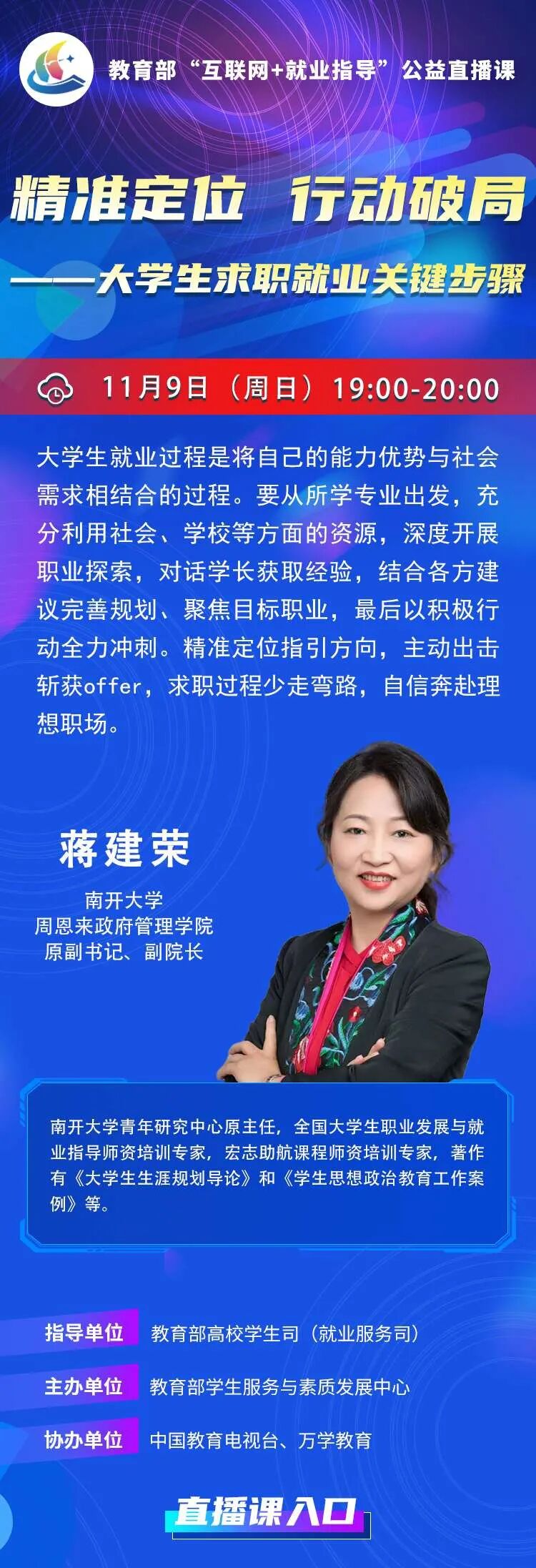 课程预告|教育部“互联网+就业指导”公益直播课:精准定位,行动破局——大学生求职就业关键步骤